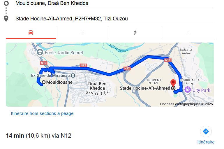 Ville : Draa Ben Khedda - Tizi-Ouzou - à 11 km du stade Hocine-Aït-Ahmed